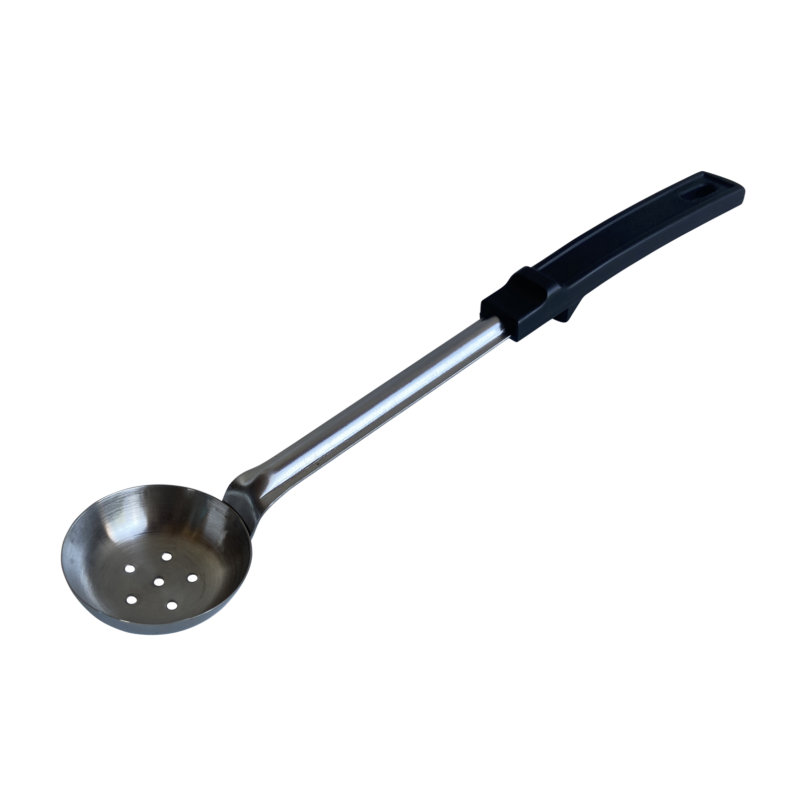 Effortlessly portion and serve sauces or dressings with the 1 oz Perforated Spoon Ladle. Featuring a convenient perforated design and a black handle, this ladle adds both functionality and style to your kitchen arsenal.