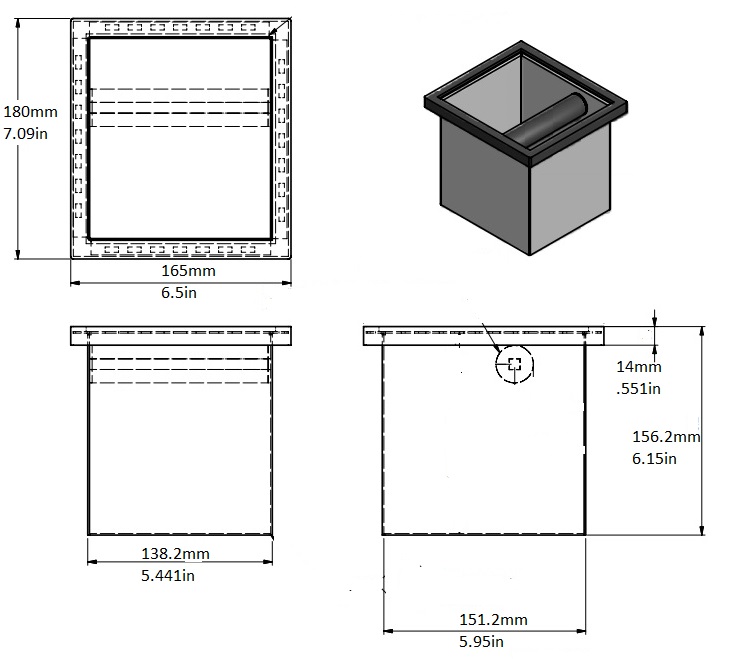Upgrade your coffee station with this larger Knock Box. With dimensions of 6″x5.5″x6″, it offers increased capacity for disposing of used coffee grounds while maintaining a compact footprint on your countertop.
