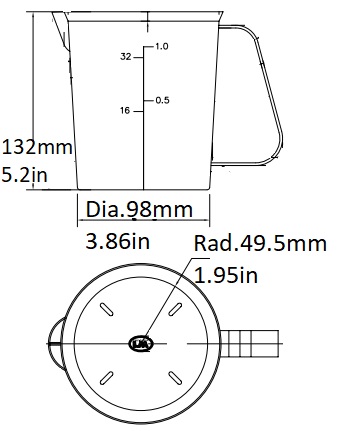 Spouted bell pitcher measuring 16 oz, designed by rattleware for precise pouring.
