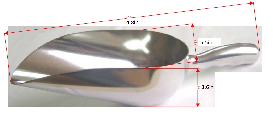 Aluminum scoop holding 56 oz by rattleware, designed for ingredient portioning.