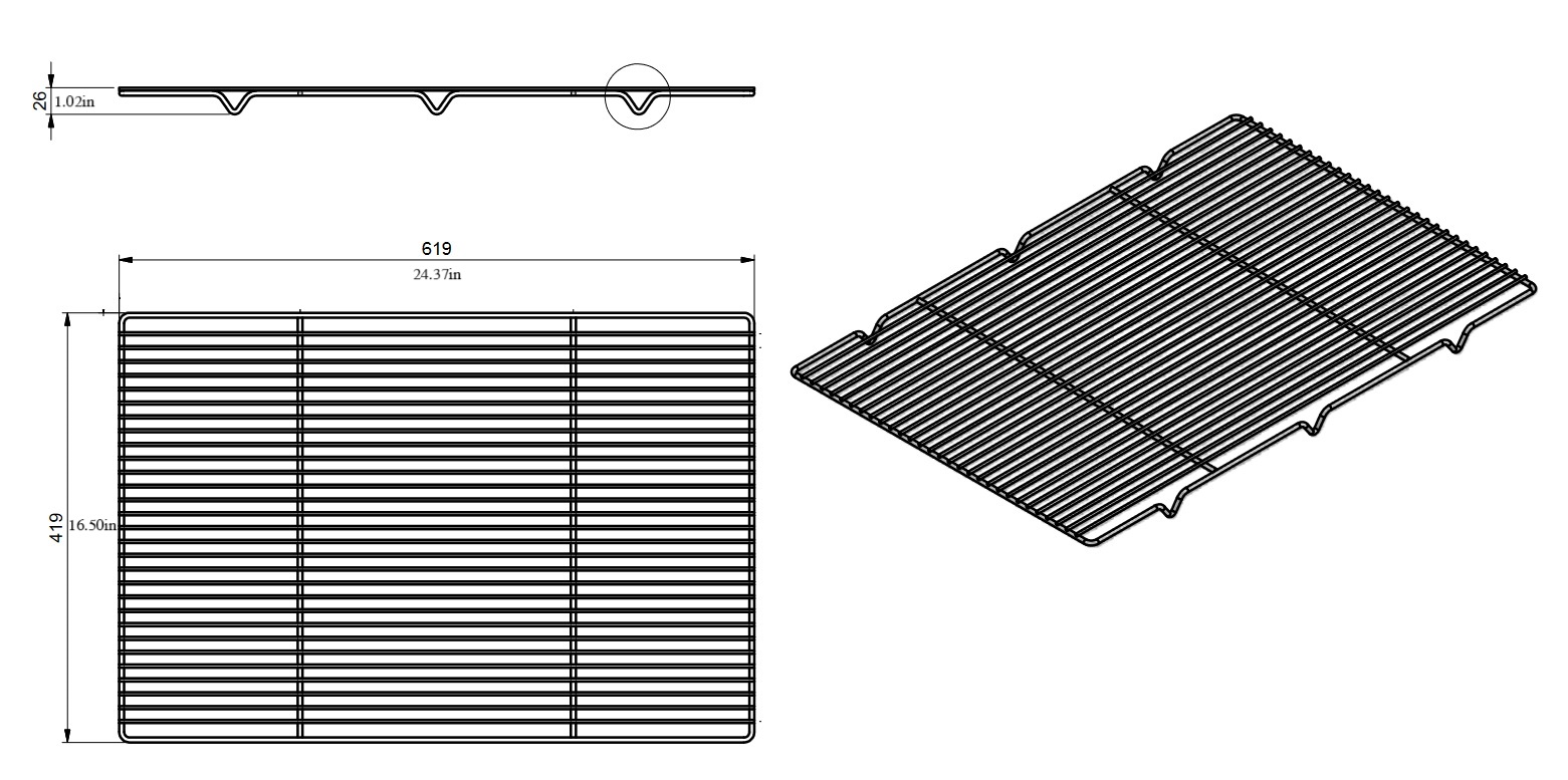 The Display Rack, Stainless Steel, for Chicken, 619x419x26mm, 24.4×16.5x1in is built to meet the demands of busy commercial kitchens or home use. Made from high-quality materials, this product is easy to clean and maintain. It offers excellent durability and performance, making it a reliable addition to your foodservice equipment. Its practical design makes it suitable for various food preparation tasks.
