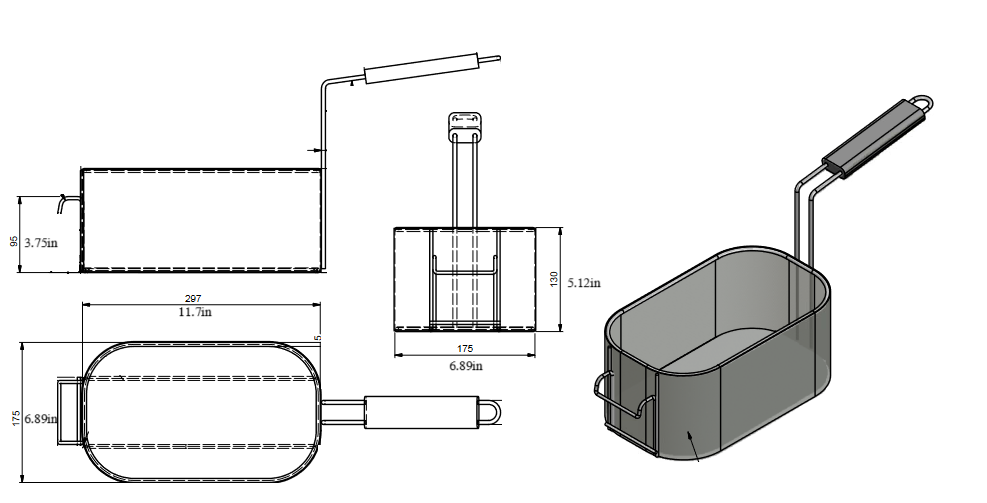 The Fry Basket, Black Handle, Stainless Steel, Rounded Edges, 11.7″ x 6.9″ x 5.1″ is built to meet the demands of busy commercial kitchens or home use. Made from high-quality materials, this product is easy to clean and maintain. It offers excellent durability and performance, making it a reliable addition to your foodservice equipment. Its practical design makes it suitable for various food preparation tasks.