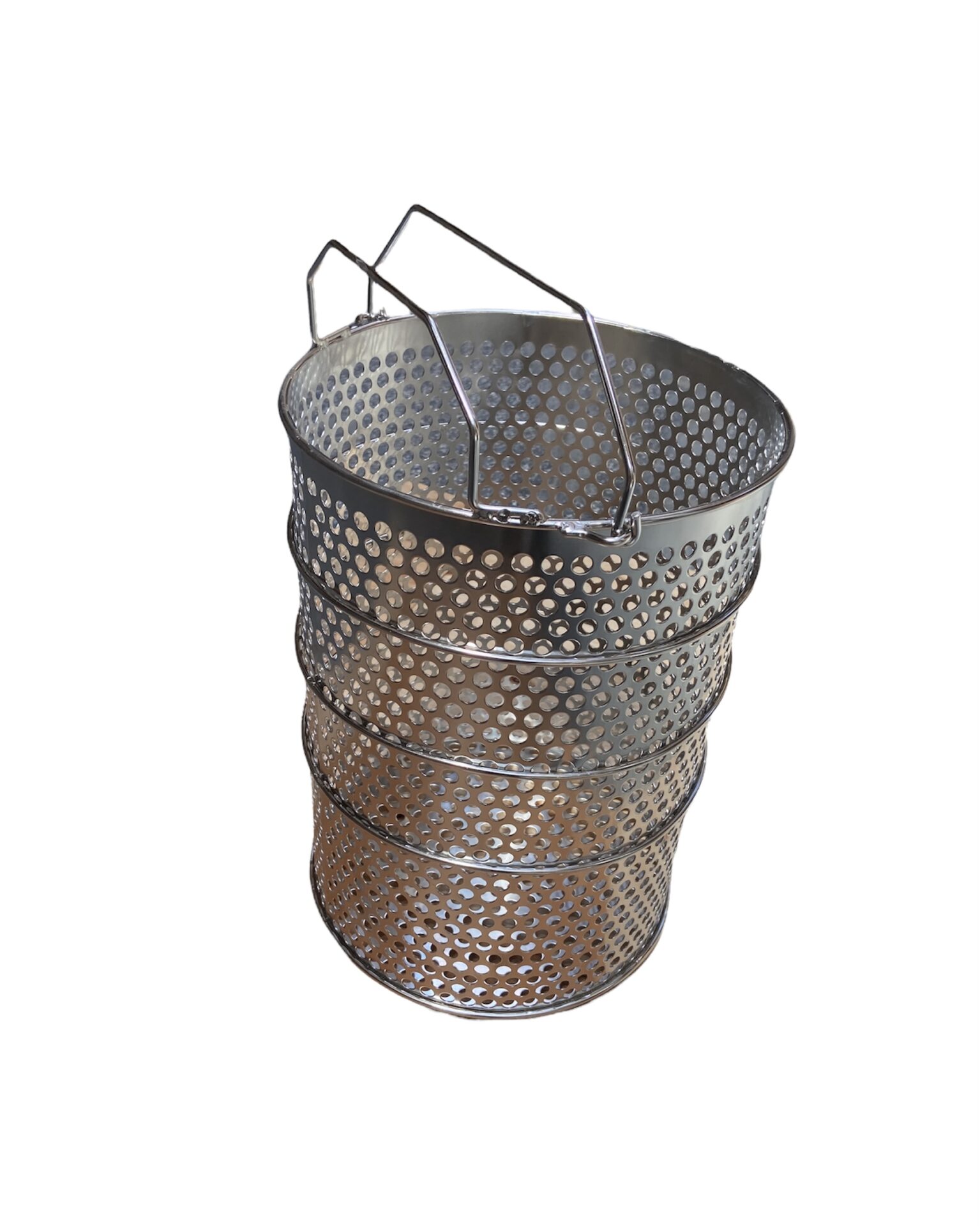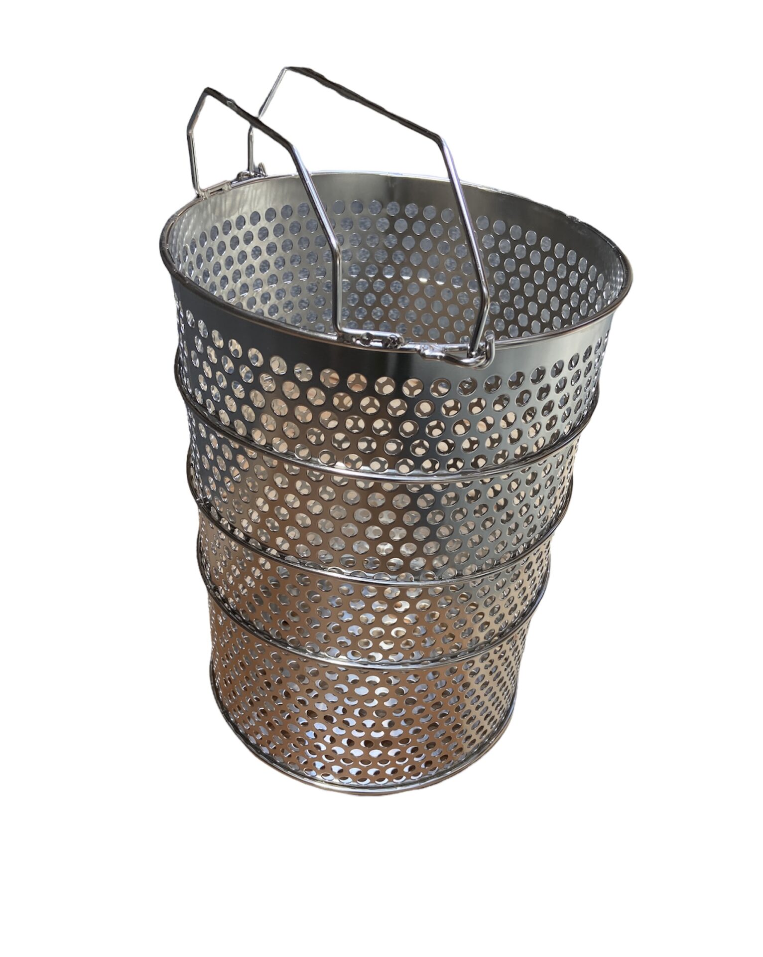 Quality Industries Fry Basket, Stainless Steel, Round, Open Top, Circle Holes, Top Handle, 292mm Diameter, 400mm Height