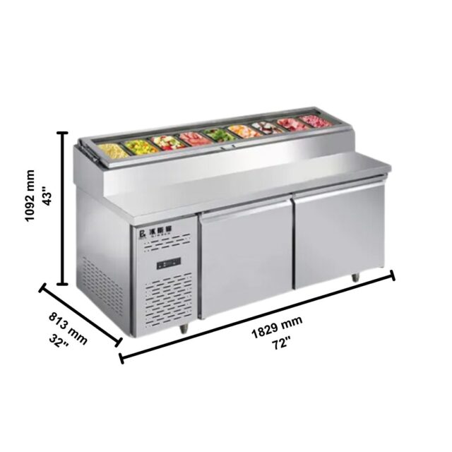 Quality Industries 72″ Prep Fridge – Stainless Steel, 110V, Holds Nine 1/3 Pans