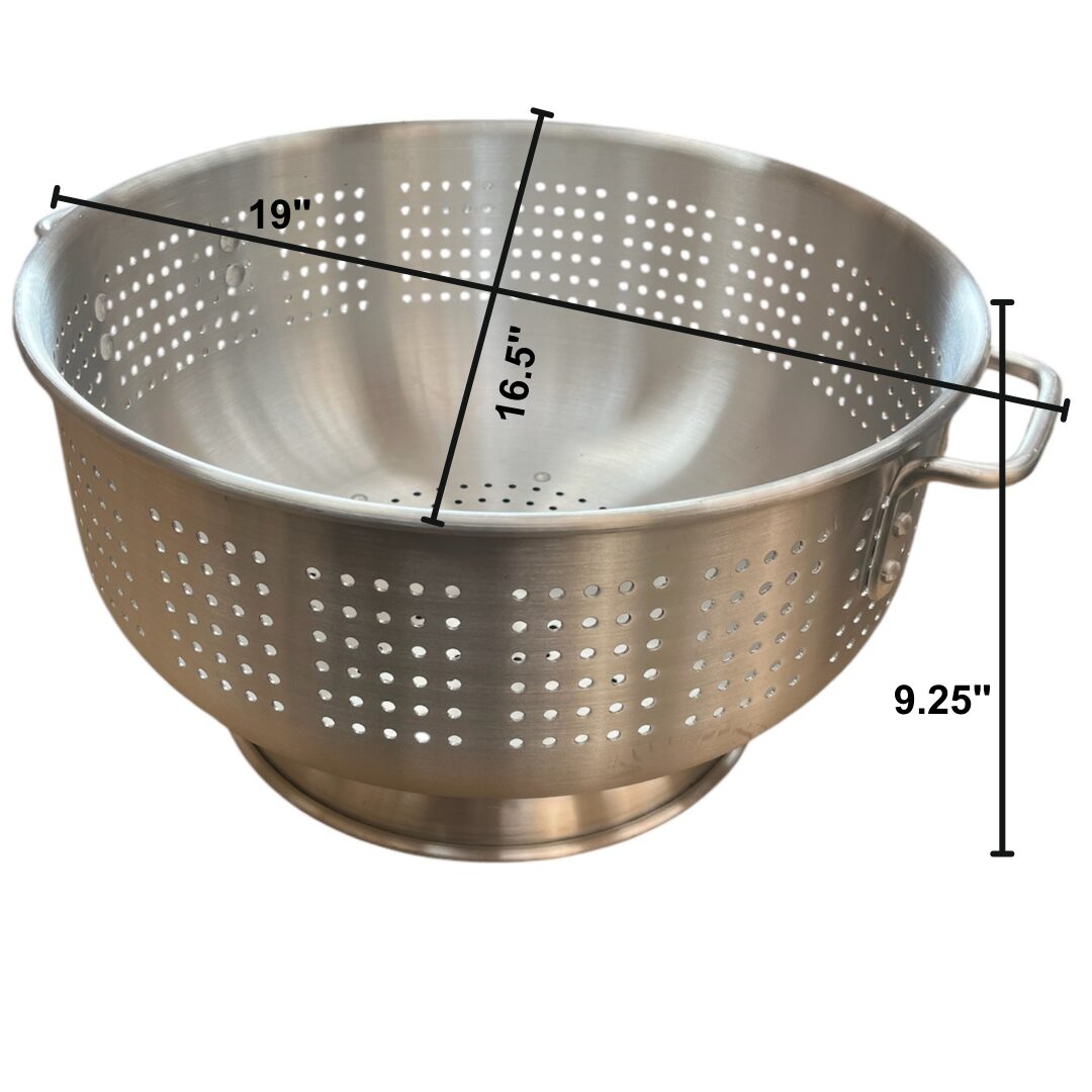 The Quality Industries Aluminum Colander is a robust and reliable kitchen essential designed to streamline your food preparation process. Crafted from high-quality aluminum, this colander offers exceptional durability and strength for handling even the heaviest loads. With a generous 16-quart capacity and a spacious inner bowl area measuring 16.5 inches in diameter and 7.25 inches in depth, it is perfect for draining large quantities of pasta, vegetables, and more. Its sleek silver finish not only enhances its visual appeal but also ensures easy cleaning and maintenance. Ideal for both home cooks and professional chefs, this colander’s practical dimensions of 19×16.5×9.25 inches make it a versatile addition to any kitchen.