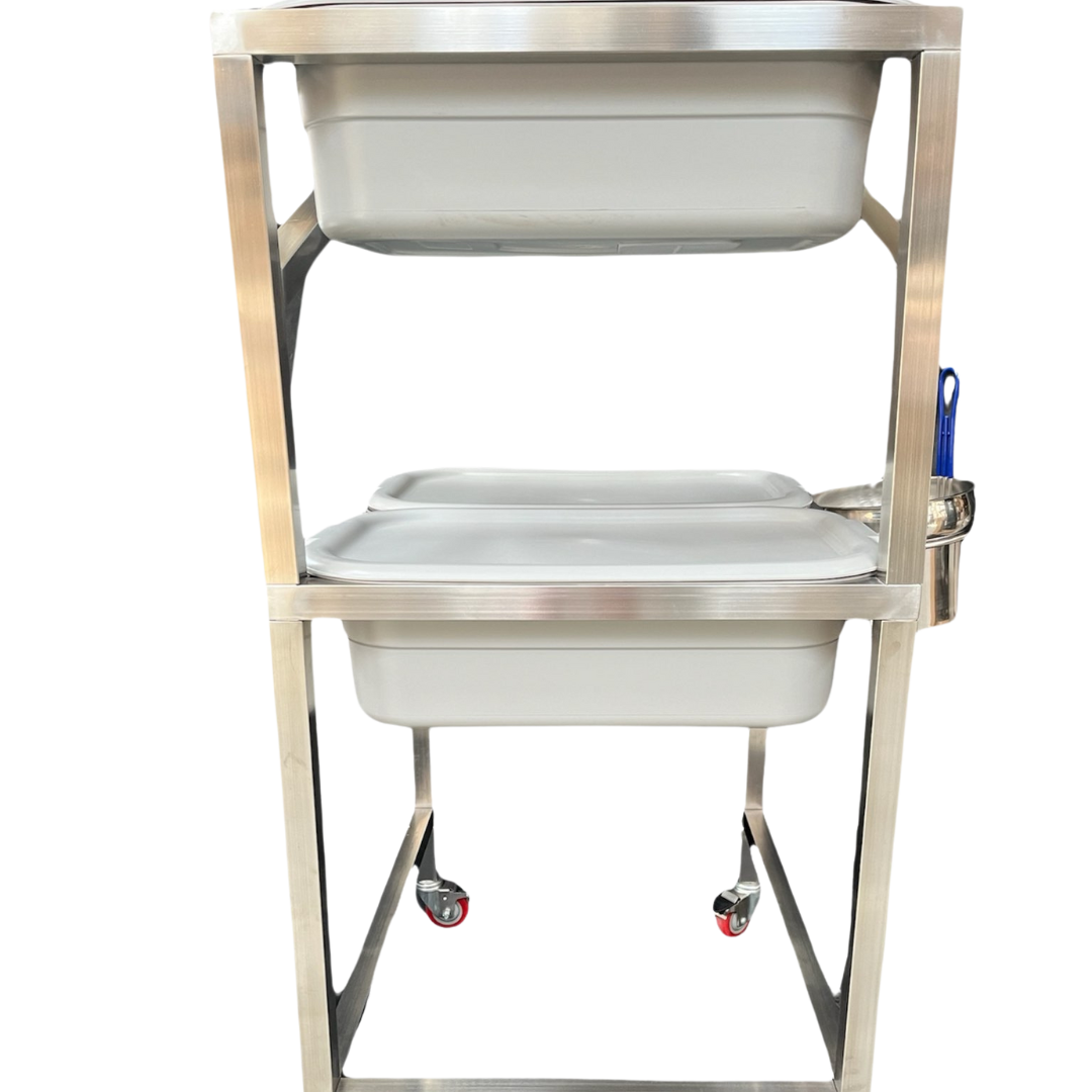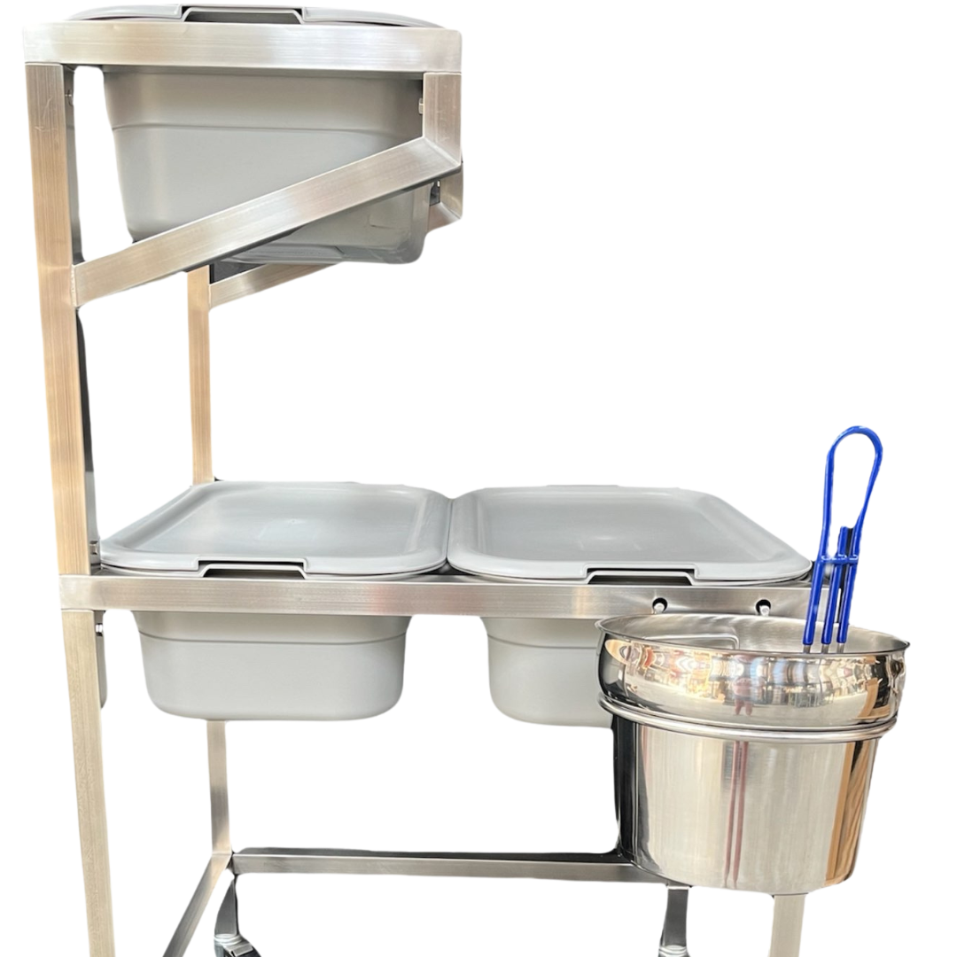 Experience unparalleled efficiency in your food preparation process with the Quality Industries Stainless Steel Breading Table. Measuring 33” x 27” x 57”, this heavy-duty workstation is expertly crafted to enhance the workflow in commercial kitchens specializing in fried foods. The no-motor design ensures simplicity and durability, while the swivel casters provide outstanding mobility, allowing you to relocate the table effortlessly within your kitchen space. Designed with both functionality and hygiene in mind, this breading table is made from high-quality stainless steel, which not only ensures longevity but also makes cleaning a breeze. Whether you’re preparing fried chicken, fish, or vegetables, this breading station is the perfect solution to achieve consistent, well-coated batches every time.
