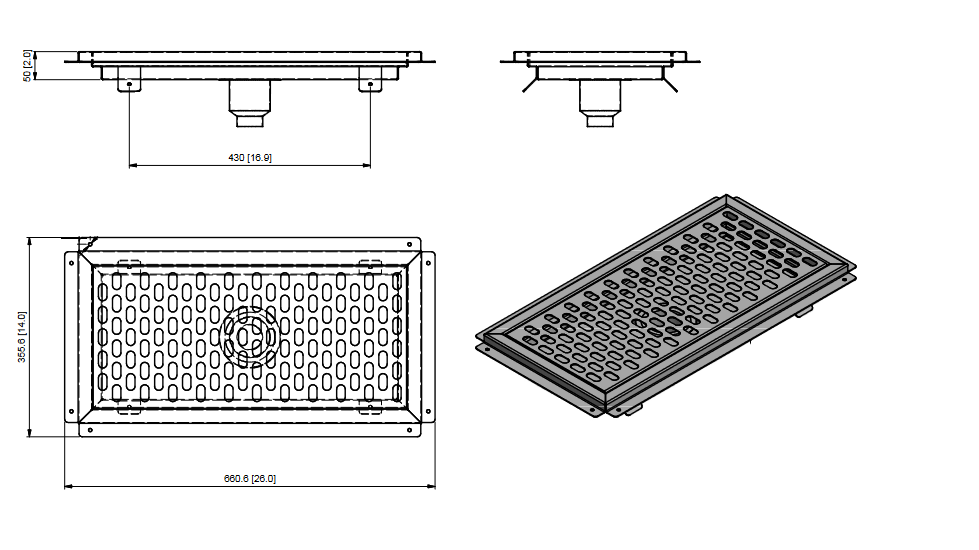 The Quality Industries Commercial Floor Drain is a robust solution for managing wastewater in busy kitchens, industrial settings, and other commercial environments. Constructed from stainless steel, this floor drain is designed to handle heavy-duty use while preventing clogging and ensuring smooth drainage. Measuring 26 x 14 x 6 inches, it provides an efficient drainage system for high-traffic areas.