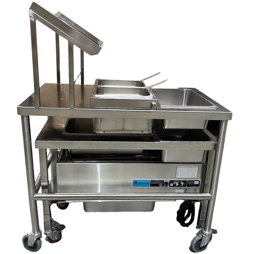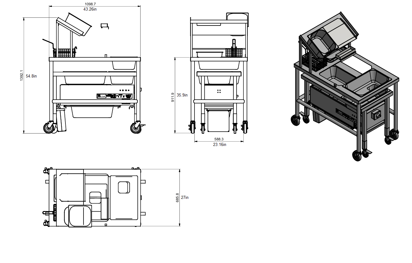 Dimensions: 43.3″ x 27″ x 55″ Stainless steel construction Swiveled Caster Kit with Brakes ensure mobility Ideal for food prep and processing High stability and durability Easy to maneuver in tight spaces Please note: The images shown are for illustrative purposes only. Colors may vary due to lighting and differences in monitor displays. The actual product may differ based on the model, size, and options selected. Refer to the line drawing provided or contact us for precise dimensions or details.