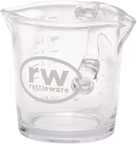 The rattleware 3oz Shot Pitcher combines functionality with style, featuring a clear glass construction and convenient white graduations for precise measurements. This double spout pitcher is designed for accurate pouring and easy handling, making it ideal for use in bars, cafes, and home settings. With a capacity of 3oz and dimensions of 2.89 x 2.40 x 2.02 inches, it offers a compact yet practical solution for measuring and serving shots, syrups, or small quantities of liquids. The sleek design and clear glass construction make it easy to see contents, while the white printing ensures clear measurement markings.