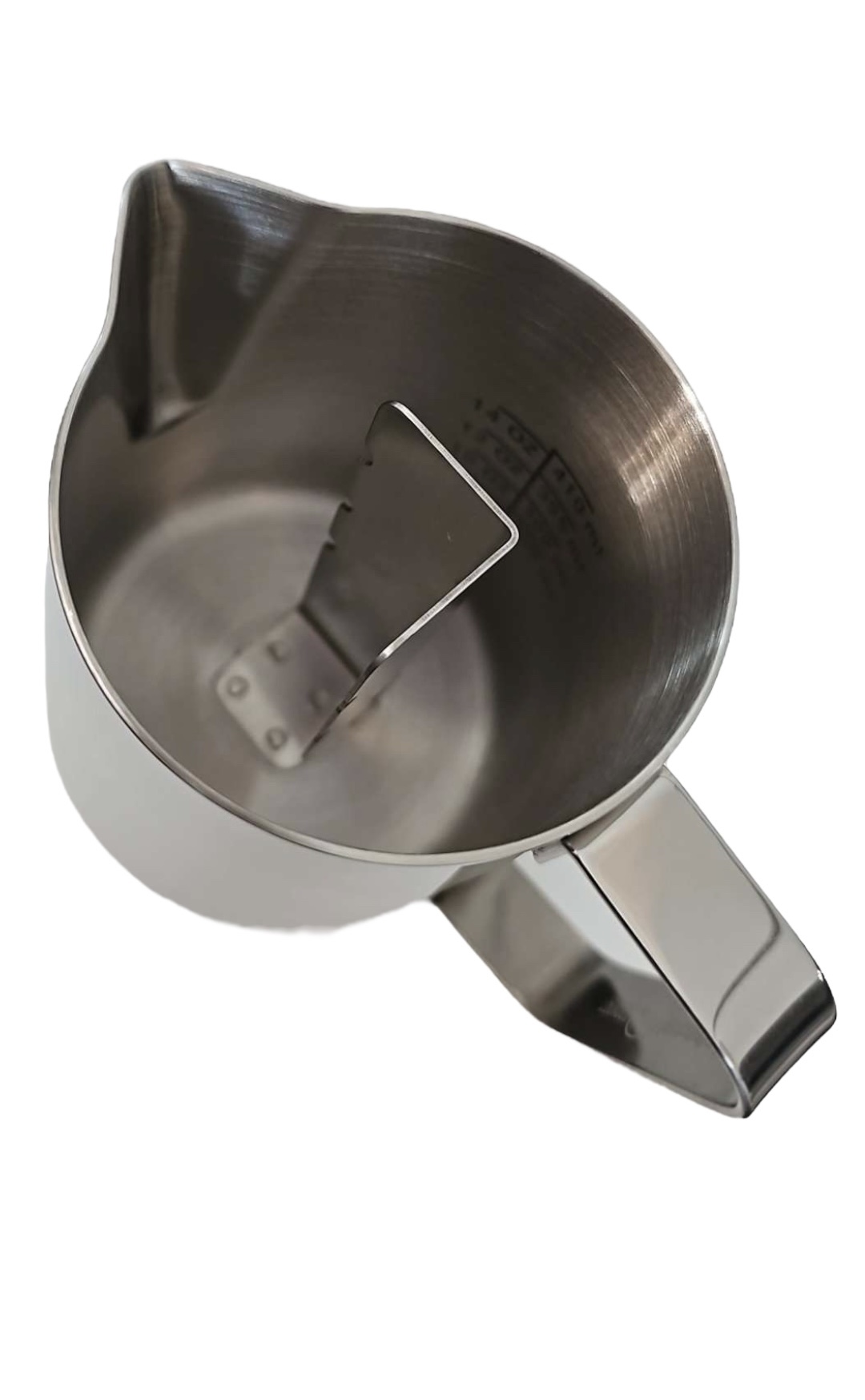 Tags: 20oz Pitcher, Barista Tools, Cafe Supplies, Center Angle Pitcher, Coffee Equipment, Etched Latte Art Pitcher