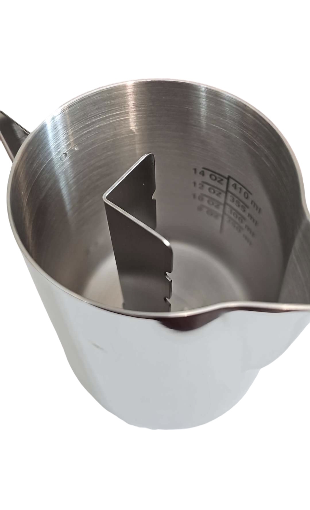 Elevate your latte art game with the Rattleware Etched Latte Art Pitcher. With a center angle design and etched volume markings, this 20oz pitcher provides baristas with greater control and accuracy when pouring intricate designs.
