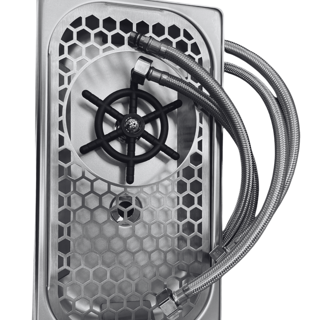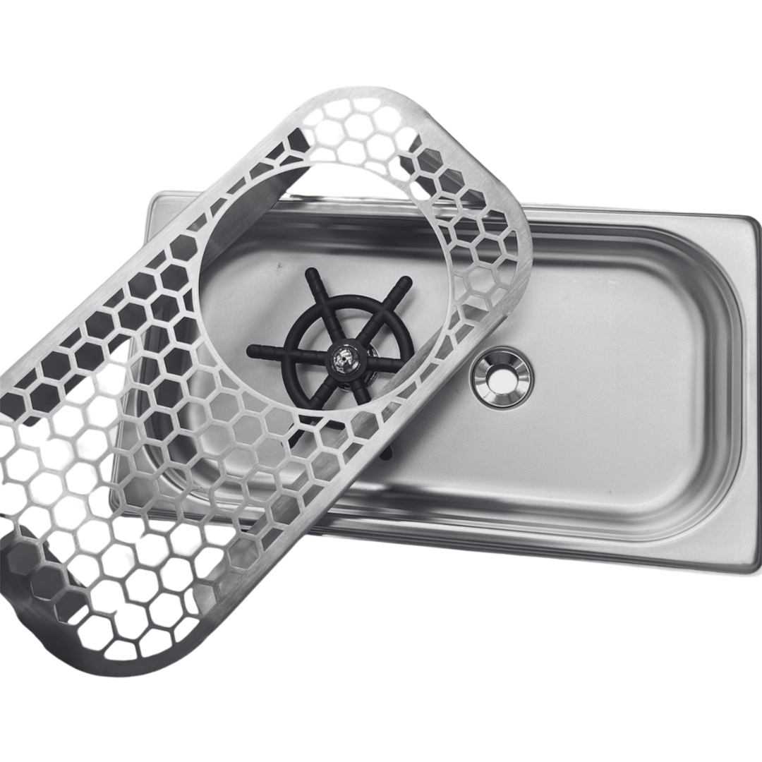Enhance your coffee shop or kitchen efficiency with the rattleware Stainless Steel Pitcher Rinser. This high-quality rinsing sink is designed for quick and easy rinsing of frothing pitchers. Made from durable stainless steel, it ensures long-lasting performance and easy maintenance. Compact yet effective, it saves time while keeping your pitchers spotless, making it a must-have tool for every barista or cafe owner.