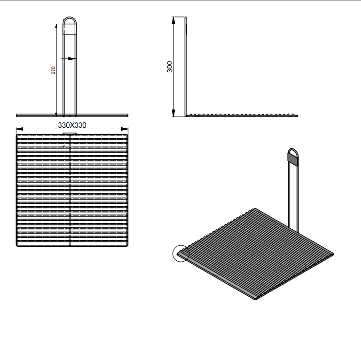 Quality Industries Stainless Steel Sediment Tray, 330mmx330mm Flat Bottom Grid, One Handle